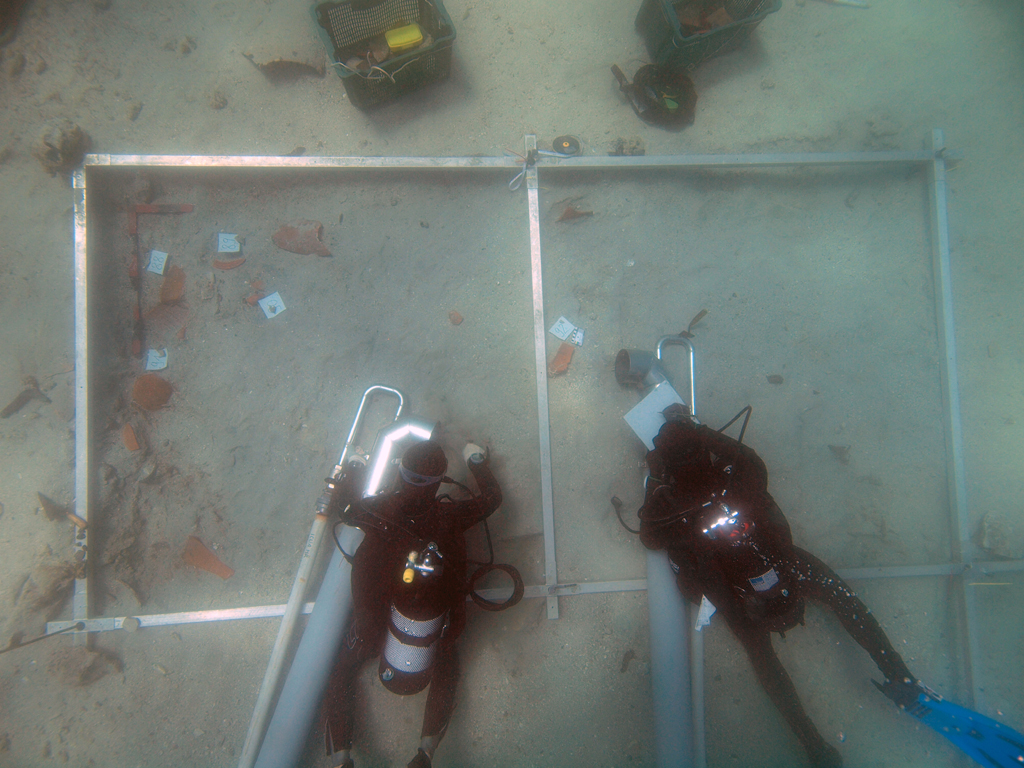 Podvodna istraživanja ostataka anti?kog brodoloma kod oto?i?a BabuljašaTijekom svibnja 2014. djelatnici Me?unarodnog centra za podvodnu arheologiju nastavili su prošlogodišnja sustavna istraživanja na nalazištu anti?kog brodoloma u podmorju oto?i?a Babuljaša kod Pakoštana. U periodu od 12.-23.05. je istraženo 5 kvadranata, a ukupno je u zadnje dvije godine istražena površina nalazišta od 36 m2 i na vidjelo su izašli mnogi zanimljivi nalazi. Brod je s teritorija sjeverne Afrike prenosio teret maslinovog ulja u amforama, te ve?u koli?inu sigilatnog posu?a. Razli?iti tipovi amfora sjevernoafri?ke, ali i isto?no-mediteranske provenijencije, reljefno ukrašena posuda i razli?iti tipovi terrae sigillate i afri?kog kuhinjskog posu?a, koje se može datirati u period tijekom petog stolje?a, i ove su godine potvrdili da se ovdje radi o vrlo zanimljivom nalazištu. Istraživanja su se provodila pod financijskim pokroviteljstvom Turisti?ke zajednice op?ine Pakoštane, a uz podršku agencije Han-Vrana u istraživanjima su ove godine sudjelovali i iskusni podvodni arheolozi - volonteri iz Crne Gore, Njema?ke, USA i Hrvatske koji su uvelike pomogli u podvodnim istraživanjima i dokumentaciji nalazišta. |