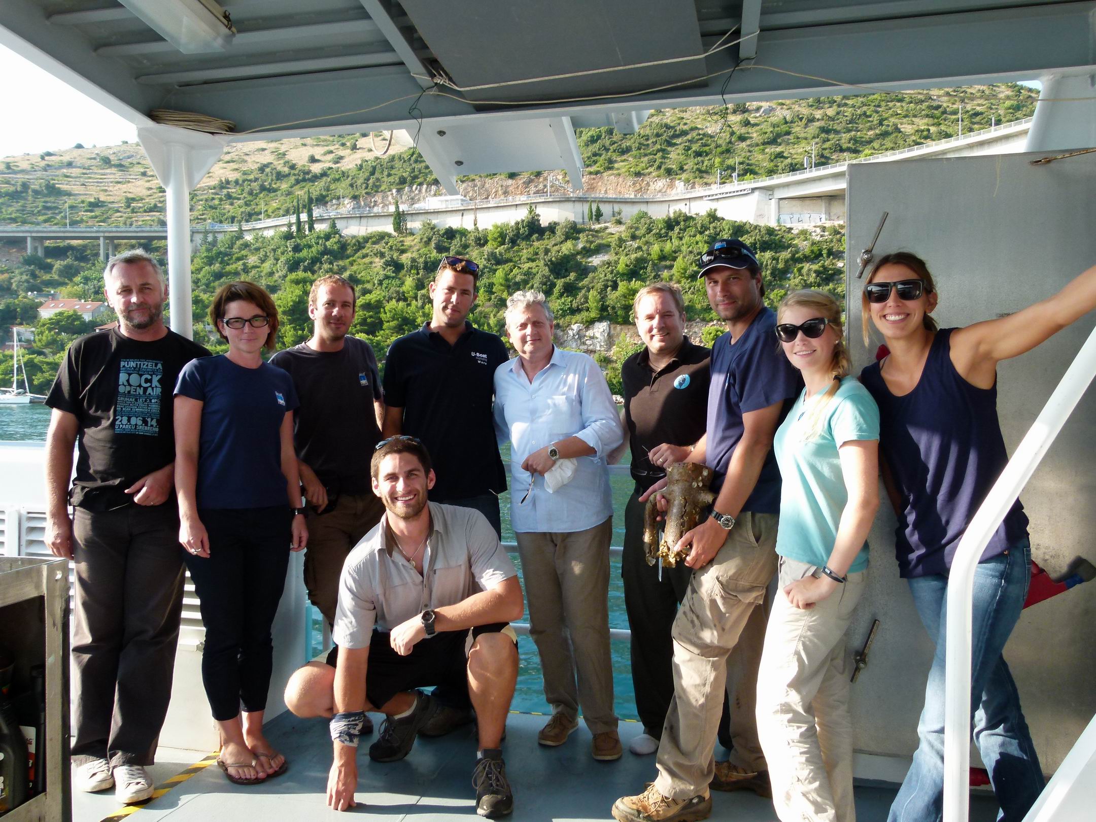 Istraživanje dubrova?kog podmorja završilo sa senzacionalnim nalazimaOvogodišnje istraživanje koje MCPA Zadar obavlja zajedno s RPM Nauti?kom zakladom i njihovim brodom Hercules u podmorju južne Hrvatske postiglo je dosada najve?e uspjehe. Ove godine je spuštanjem robota kona?no otkriven netaknuti anti?ki brodolom iz 1. st.pr.Kr. kod rta Pelegrin. Na njemu su na morskom dnu vidljivi ostaci gotovo stotinjak amfora u redovima, a vjerojatno ih je u dubljim slojevima još nekoliko stotina, pa i drveni ostaci broda. Tako?er, kod rta Sv.Petar kod Kupara prona?en je još jedan brodolom na kojem je primije?eno oko ?etrdesetak cijelih amfora, ali nije sigurno koliko ih je sa?uvano u dubljim slojevima. Uz ove prona?eno je i nekoliko brodoloma iz kasnijih razdoblja. Ovi uspjesi pokazuju veliki potencijal ovih istraživanja, naro?ito jer su postignuti usprkos ?injenici da su tehni?ki problemi ponovno usporili napredovanje istraživanja prema sjeveru, u pravcu Dubrovnika. Istraživa?e i posadu broda je na jedan radni dan posjetio i zamjenik ministrice kulture RH, prof. Berislav Šipuš. |