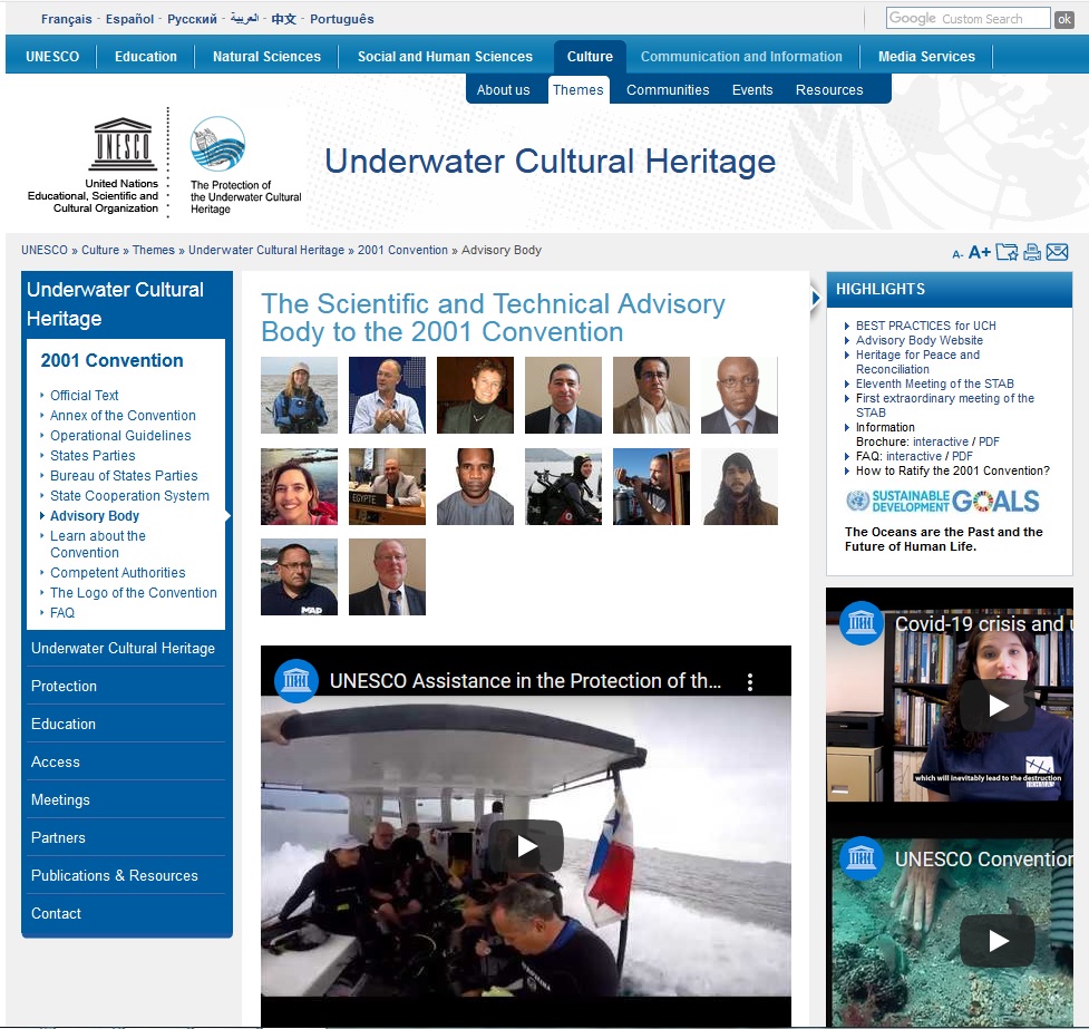 Od listopada 2019. godine ?etiri su drave (vicarska, Niue, Oman i Senegal) ratificirale 2001. Konvenciju o zatiti podvodne kulturne batine, to ?ini ukupno 65 drava stranaka Konvencije. U 2021. godini obiljeava se 20. obljetnica usvajanja 2001. Konvencije, razmilja se o mogu?nostima organiziranja popratnog doga?anja na marginama sljede?eg Sastanka drava stranaka 2001. Konvencije.